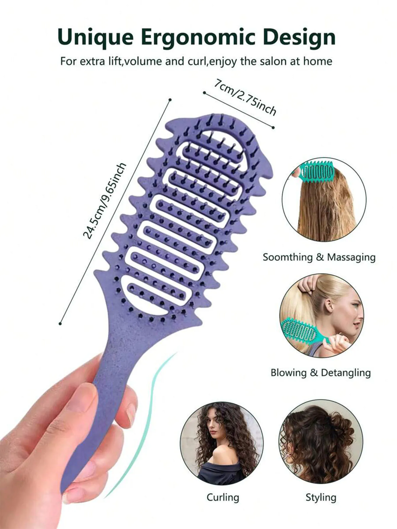 1. Effortless Hair Care: Achieve smooth and quick-drying hair effortlessly with this curl defining brush. It creates voluminous curls while minimizing hair breakage with its unique edge-shaped teeth that separate the strands effectively.