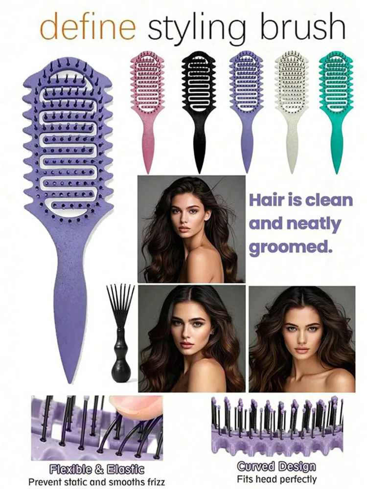 3 In 1 Curl Define Styling Brush Hollow Brush Tangled Hair Comb Shaping Defining Curls Barber Multipurpose Home Styling Tool New